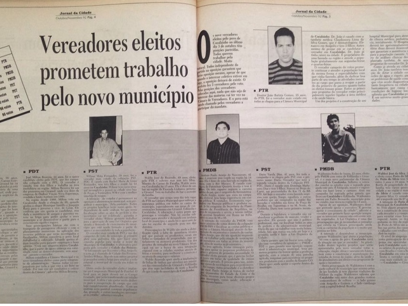 Posse dos primeiros vereadores eleitos no município de Cocalzinho de Goiás. Foto/Jornal 3 de Julho